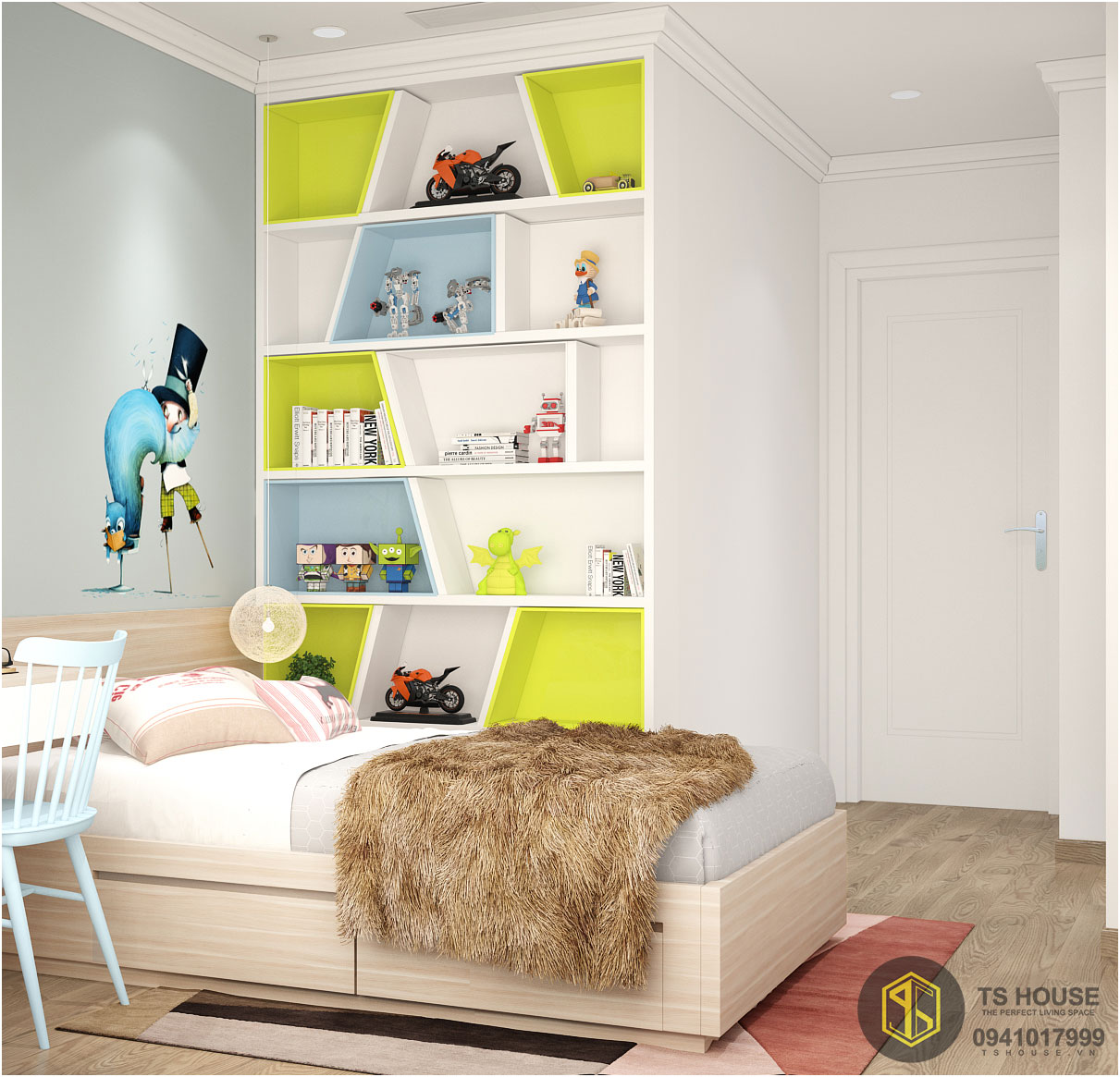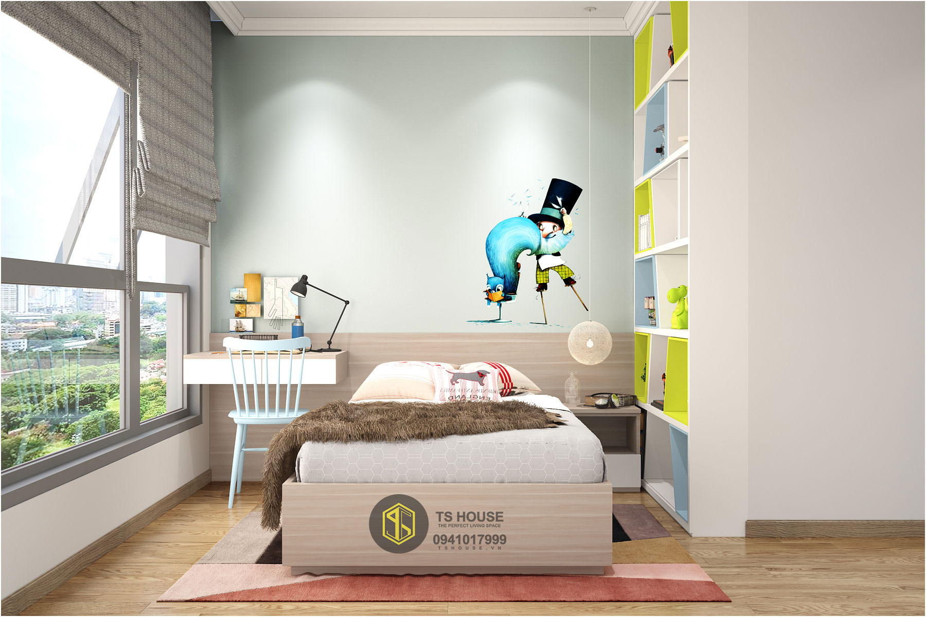 Thiết kế nội thất chung cư đơn giản là sự sắp xếp nội thất,đem lại sự khoa học khi sử dụng,giúp cho chủ nhà có thể tận dụng được hết mọi không gian có thể sử dụng trong căn hộ của mình.Phòng ngủ master trong Thiết kế nội thất căn hộ Park 9 - 15  được thiết kế rất hiện đại,màu sắc trẻ trung,nhẹ nhàng,mang lại vẻ đẹp tinh tế,sang trọng.Không quá cầu kì trong thiết kế,đơn giản chỉ là các kệ tủ sắp xếp phá cách một chút kết hợp cùng vách ốp nhẹ nhàng.Phần kệ tivi được thiết kế sắp xếp rất khéo léo,vừa không làm chật diện tích phòng,còn tận dụng được rất nhiều nguồn sáng từ thiên nhiên.Một không gian đẹp không phải do chỉ đơn thuần là mua đồ về đặt sao cho vừa không gian mà còn do  thiết kế đồ nội thất ,phối hợp màu sắc sao cho hợp lí qua từng chi tiết,mọi vật được phối hợp với nhau hài hòa đẹp mắt nhất có thể,đáp ứng được nhu cầu sử dụng.Phòng ngủ con trai được thiết kế rất sinh động,bắt mắt qua việc sử dụng các gam màu tươi sáng,giấy dán tường vui nhộn.màu sắc hài hòa,thiết kế đồ gọn gàng,ngăn nắp.Kệ tủ được thiết kế liền mạch với không gian trong phòng,xen kẽ các màu sắc vui nhộn kết hợp với nhau.Một không gian tươi mới,màu sắc vui nhộn,thiết kế tinh tế.Những kệ hộc tủ được sắp xếp sole với nhau có chủ ý,làm không gian trở nên hấp dẫn hơn.Đến với phòng ngủ con gái chúng ta sẽ cảm nhận được sự ấm áp trong căn phòng này.Với sự kết hợp màu sắc nhẹ nhàng,tranh tường đáng yêu,căn phòng trở thành một nơi có thể nói là quá tuyệt vời cho những công chúa trong gia đình bạn.Màu sắc trong căn phòng được sử dụng không quá lòe loẹt,vì đây là một tông màu dịu nhẹ.Không quá sặc sỡ mà vẫn thẩm mỹ,sinh động.Sự đơn giản trong thiết kế nội thất,kết hợp màu sắc vật liệu tinh ý,phù hợp với lứa tuổi ,tâm lý của các bé.