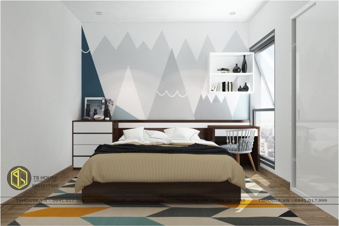 Thiết kế và thi công nội thất Căn 06 tòa M1 Metropolis với phòng ngủ thứ nhất sử dụng họa tiết đơn giản xung quang tường căn phòng bằng gam màu sáng và tối . Tiết kiệm không gian bằng việc kết hợp bàn làm việc và giường ngủ . Thảm sàn nhà dùng chi tiết đan xen hai gam màu sáng và trầm bằng các chi tiết đơn giản nhẹ nhàng mang lại không gian hiện đại nhưng không gây cho người nhìn sự nhàm chán mà bù lại khiến khách hàng cảm thấy dễ chịu hơn . Việc phối hợp màu sắc ra sao cho phòng ngủ thật thoải mái là điều vô cùng quan trọng . Sử dụng tông sáng để khiến căn phòng trở nên thoãng đãng hơn thêm chi tiết để làm dịu lại màu sắc của nội thất Phòng ngủ thứ 2 sử dụng tranh treo tường vẽ họa tiết đơn giản nhưng dùng gam màu tươi sáng không quá cầu kì để đem lại sự hiện đại cho căn phòng . Bóng đèn tròn với ánh sáng vàng để hai bên của giường làm cho căn phòng ấm áp hơn . Thiết kế và thi công nội thất Căn 06 tòa M1 Metropolis Với những gợi ý về thiết kế trên mong rằng bạn sẽ tìm thêm được những ý tưởng ưng ý nhất cho căn hộ của mình.Và có thêm những gợi ý cho :