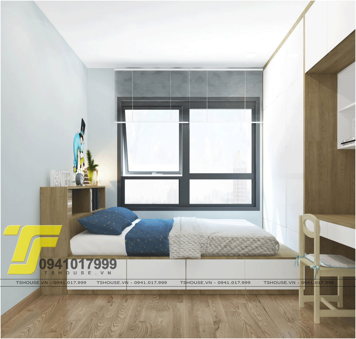 Thiết kế và thi công nội thất 2 ngủ căn 04 tòa C6Dcapitale ,chúng ta sẽ cùng đến với các thiết kế phong ngủ.Phòng ngủ được thiết kế theo gam màu trầm,không quá tối mà cũng không quá sáng.Thiết kế rất đơn giản mà hiện đại sang trọng.Phong cách thiết kế nội thất hiện đại luôn mang lại những thiết kế tinh tế nhất,công năng sử dụng luôn được đưa lên hang đầu.Vì hầu như chúng ta đều thấy ,hiện nay các chung cư cao tầng đều rất hạn chế về mặt diện tích.Bạn phải lựa chọn làm sao để không gian nhà mình có thể vừa có không gian sinh hoạt,vừa có không gian cho các con vui chơi.Không thể áp dụng thiết kế nội thất cổ điển vào một không gian nhỏ hẹp,như thế cũng làm mất đi giá trị thẩm mỹ của chúng.